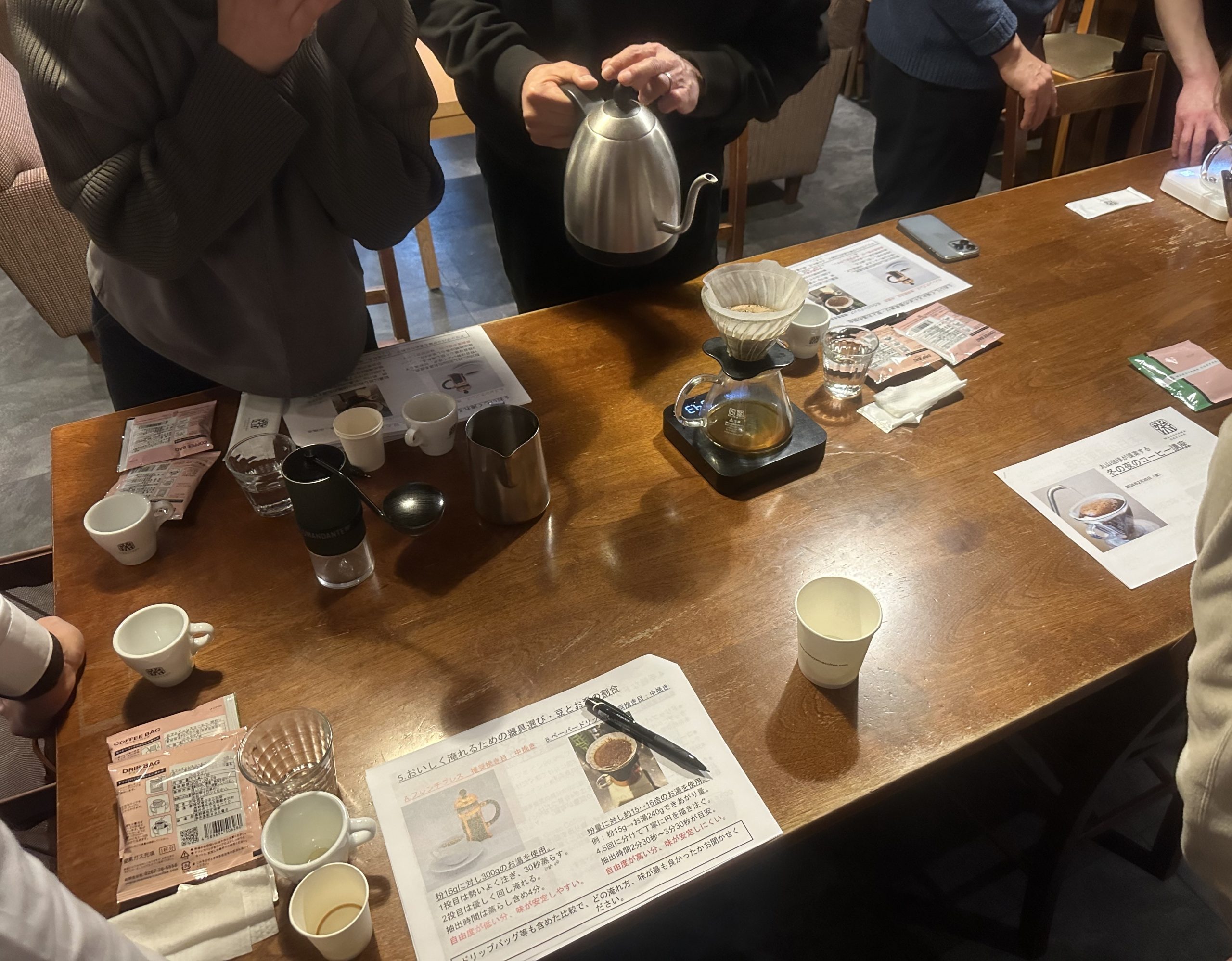 In the second half of the session, participants were given a lecture on "tips for brewing delicious coffee at home." They also shared their concerns about coffee and were surprised at the price of the staff's personal coffee grinder.