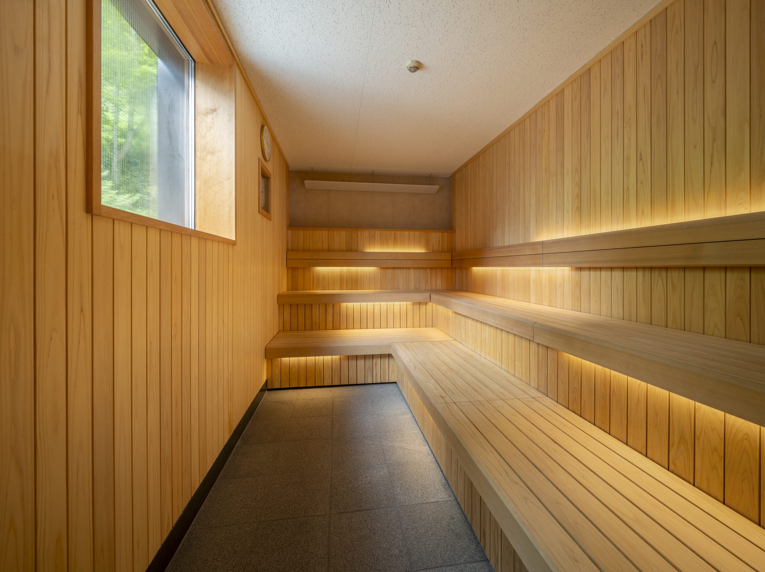 サウナの合間には、軽井沢の森を感じて味わう、爽やかなスペシャルドリンク「森林ソーダ」を用意しています。5種の木(カラマツ‧アカマツ‧モミ‧アブラチャン‧ヒノキ)から抽出された香りに包まれて、心身ともにととのいます。