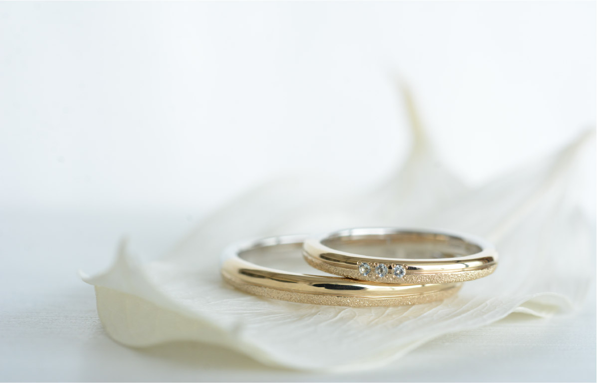 大切に選んだ3石の輝きが、おふたりの指輪を彩ります。