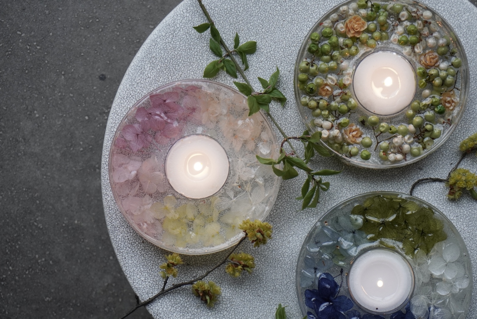 軽井沢を拠点に活動するforest fairyさんを講師に迎え、春の彩りを楽しむキャンドル作りのワークショップ。自由に選べる花材には、柔らかな風合いの紫陽花をご用意しました。色とりどりの素材の中からお好みのものを選び、春の空気感を閉じ込めるように仕立てていきます。自分用としてはもちろん、「母の日」の贈りものとしてもおすすめです。自然を感じる花々とともに、穏やかな創作のひとときをどうぞ。