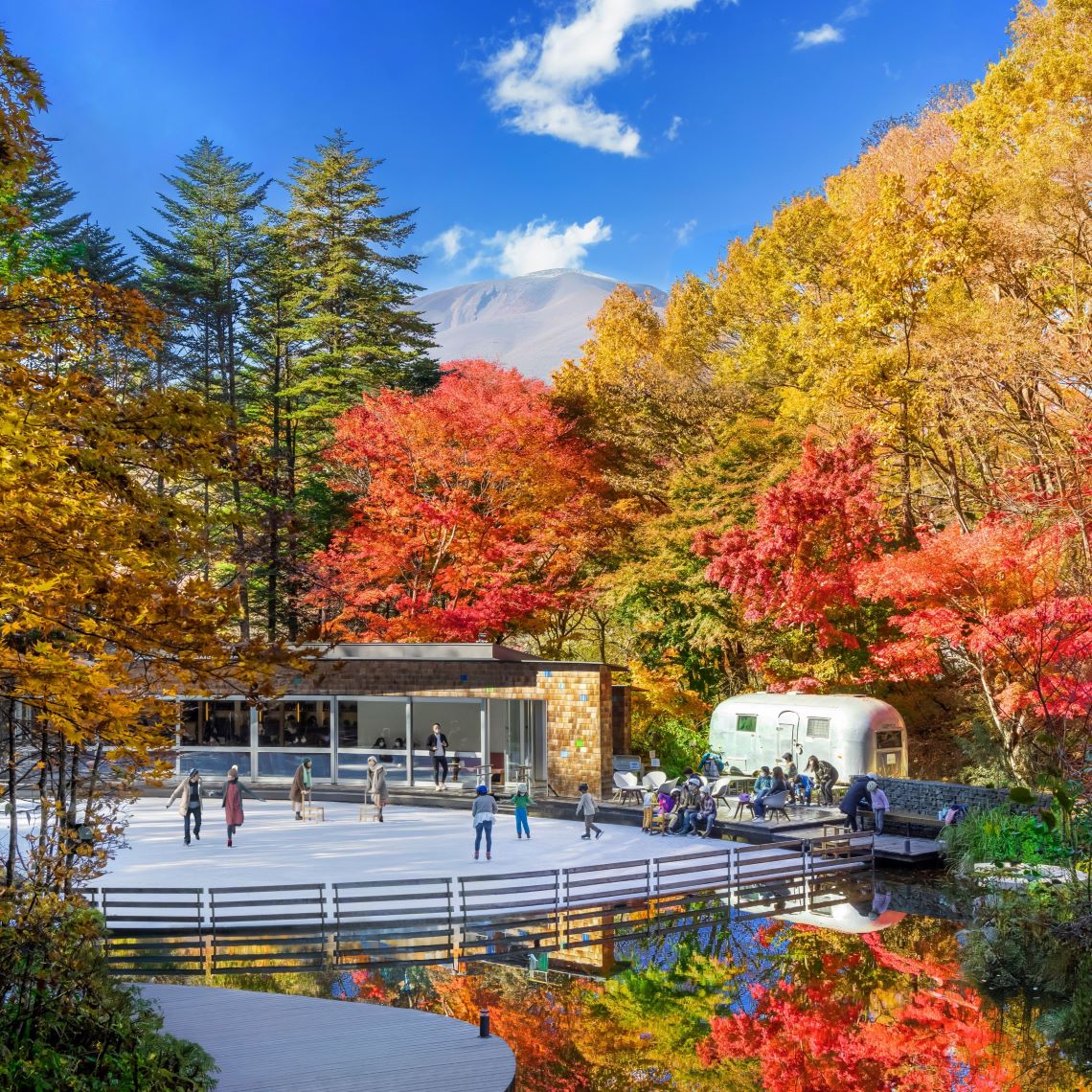 Når bladene blir røde, åpnes det kunstige området. Du kan nyte skøyter mens du beundrer høstløvene til lønnetrærne og de gule bladene til lerketrærne.