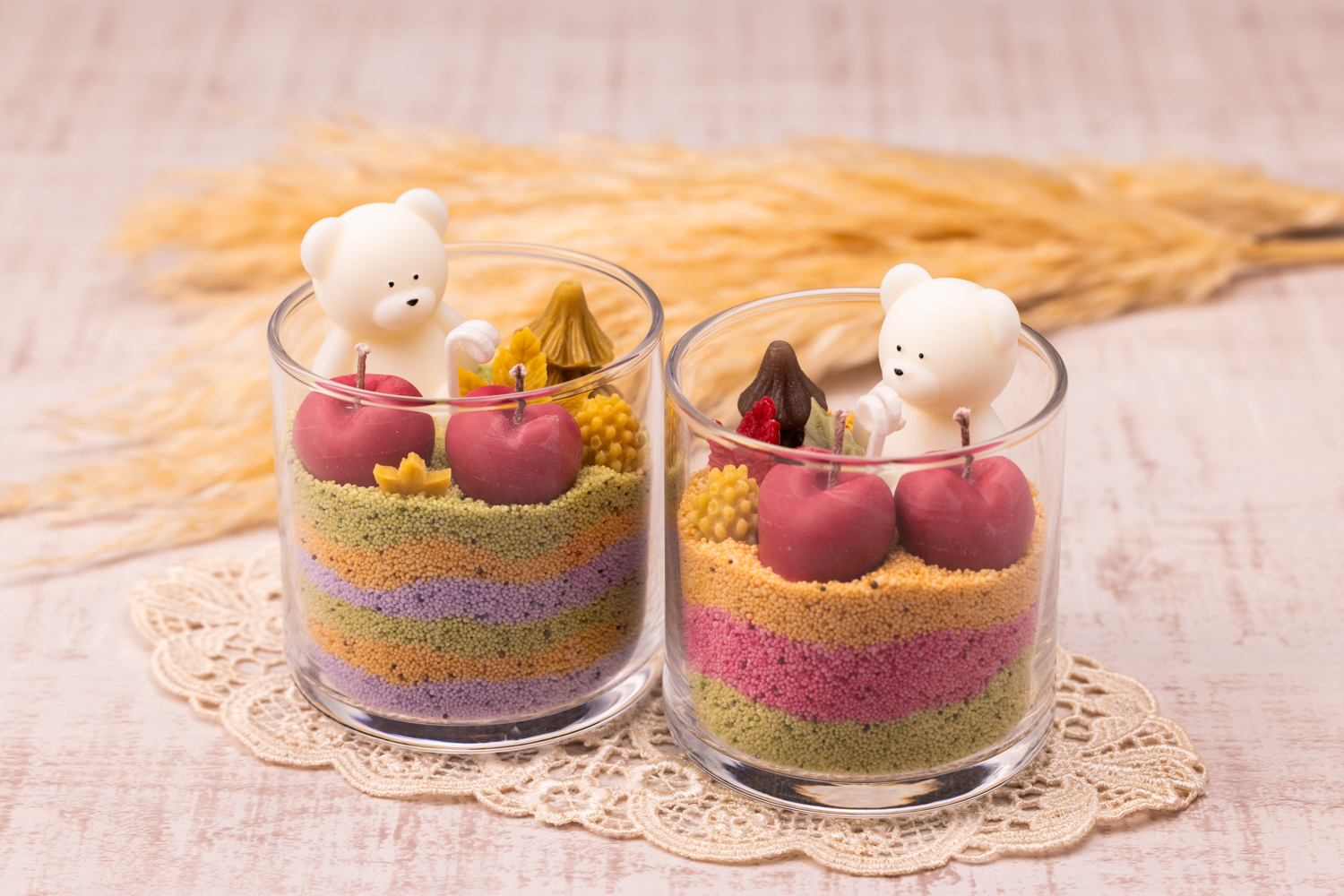 這個蠟燭製作工作坊會將彩色蠟沙一層層鋪入玻璃容器中,營造出秋日森林的景象,然後用你最喜歡的元素進行組合和裝飾。所有裝飾物,包括蘋果,也都是用蠟製成的。何不嘗試製作屬於你自己的“森林蘋果蠟燭”,感受一下舒緩的氛圍呢?